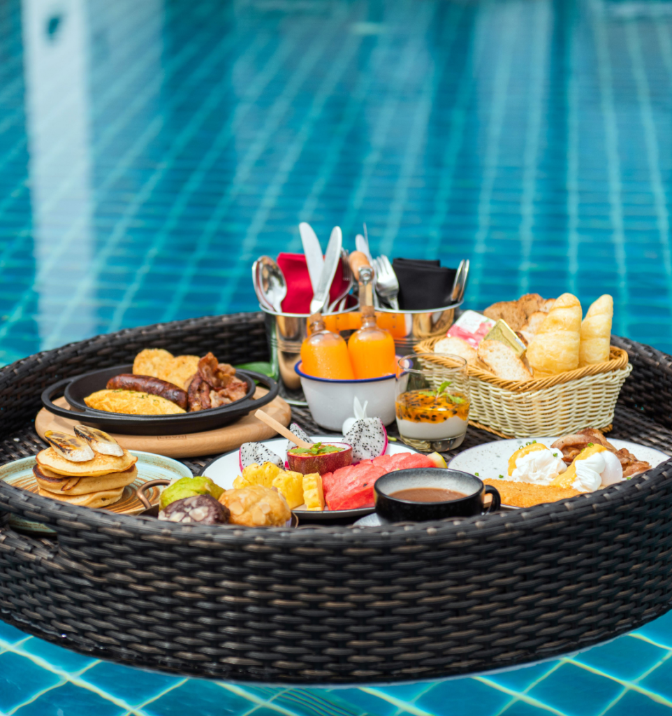 Served in the privacy of your pool, our Floating Breakfast offers a beautifully composed selection of morning delicacies, fresh tropical fruits, and artisanal pastries. A serene and elegant way to welcome the day—unhurried, intimate, and effortlessly refined.